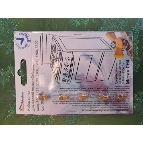 Комплект сопел на природный газ для плит Gefest до 2009 г.в. моделей 1100, 1200, 3100, 3200, 3300. Шаг резьбы 1