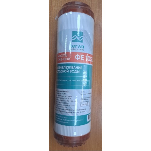 Картридж Terwa ФЕ 10SL предназначен для использования в проточных системах фильтрации воды, где требуется обезжелезивание.