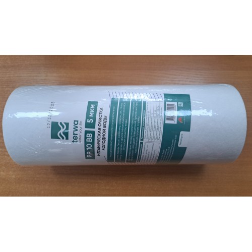 Картридж Terwa PP 10 BB — это сменный фильтрующий элемент из вспененного полипропилена, предназначенный для предварительной механической очистки холодной воды от песка, ржавчины, ила и других нерастворимых примесей. Благодаря типоразмеру Big Blue 10", он обладает высокой пропускной способностью и подходит для установки в магистральные фильтры 10ВВ в частных домах и квартирах с высоким потреблением воды.